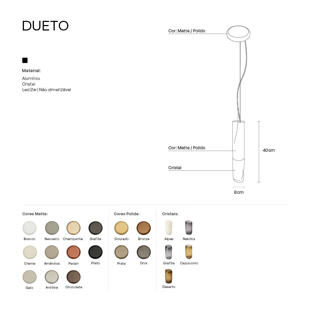 | Acabamento do Cristal | Capuccino, Deserto, Grafite, Neblina, Alpes |
