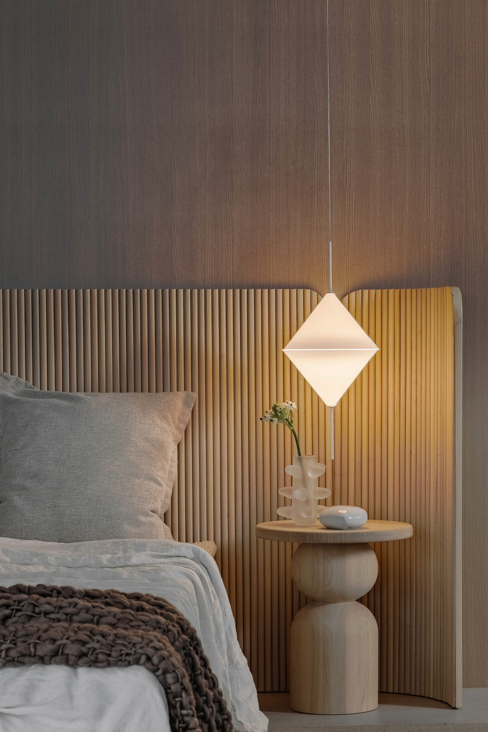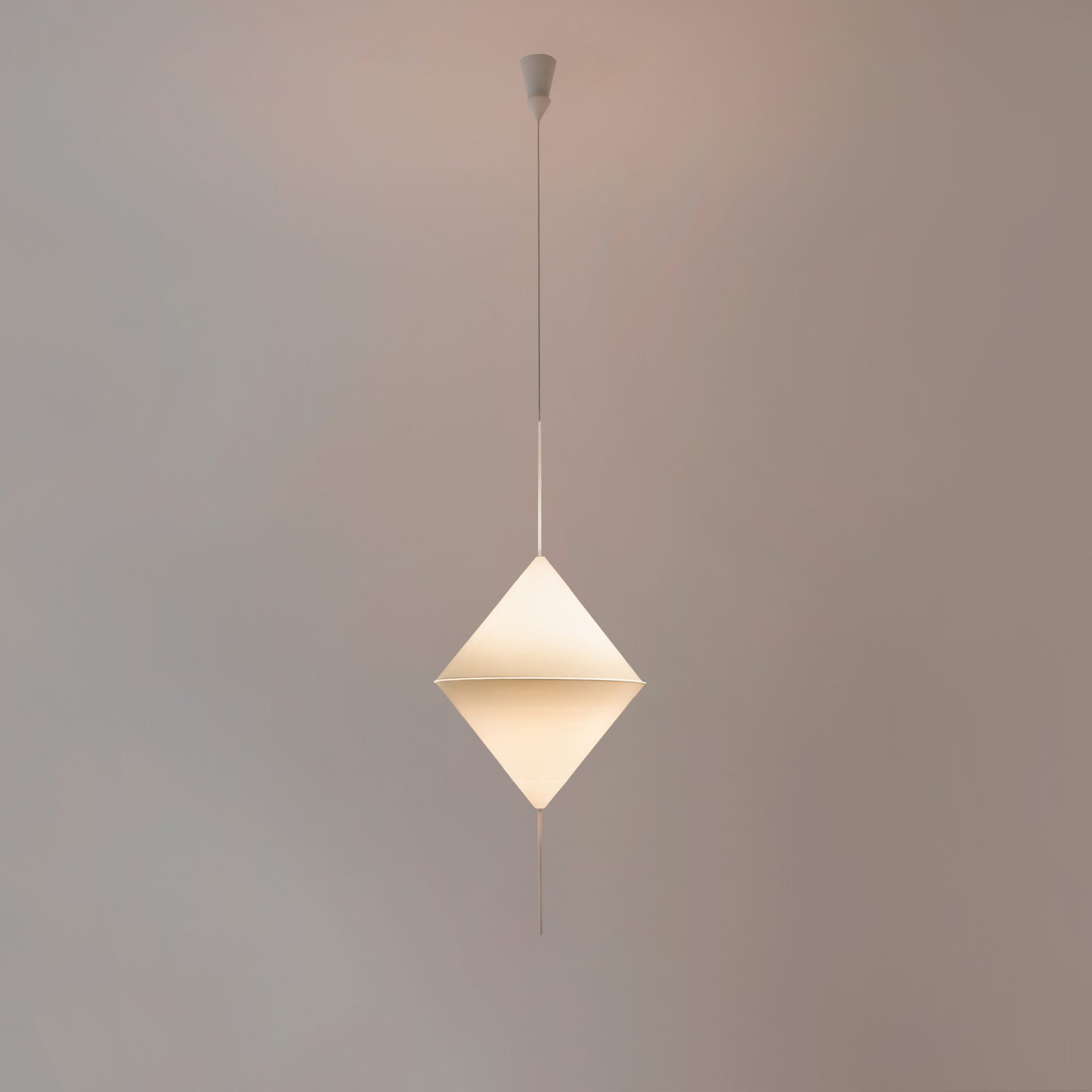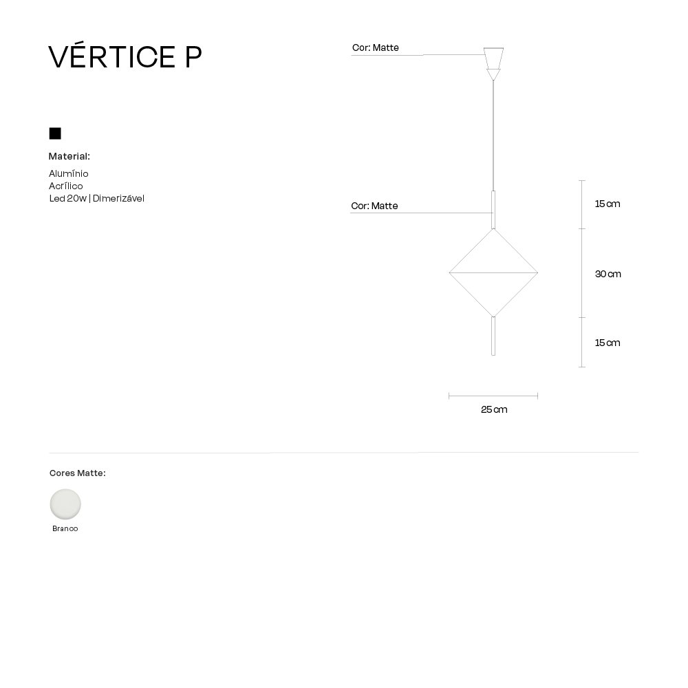 Pendente Vértice Pequeno.Peça que com seu design geométrico e acabamento em metal se destaca por sua elegancia e atemporalidade. Sua luz difusa garante a criação de um ambiente aconchegante, além de preporcionar uma presença escultural e um equilibrio visual marcante. E, por ser dimerizável, possibilita o controle da intensidade luminosa para criar diferentes atmosferas, sem perder a sofisticação e personalidade